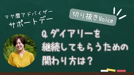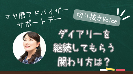 ダイアリーを継続してもらうための関わり方、ダイアリー講座の進め方、ダイアリーのエピソードなど、マヤミラクルダイアリーに関することを教えてもらいました。